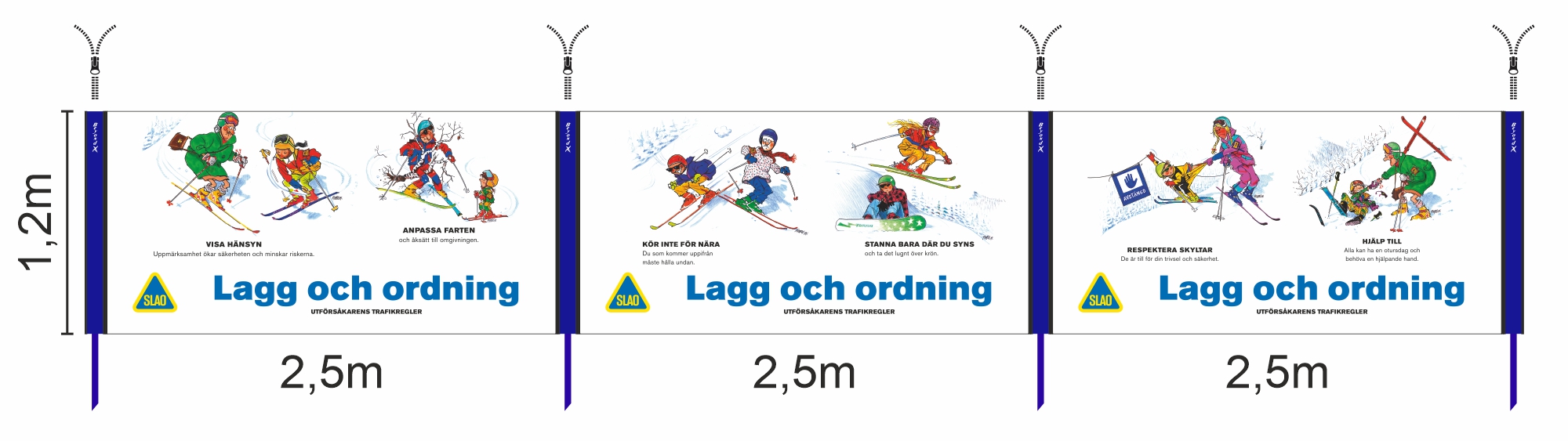 Hjälp till & Respektera skyltarPraktisk nätbanderoll med blixtlås i vardera ända så den enkelt kan fästas i våra solpar för nät. Sätt sömlöst in denna i näten vid liften eller ensam vid avstiget för att påminna gästerna där detta budskap gör skilland.